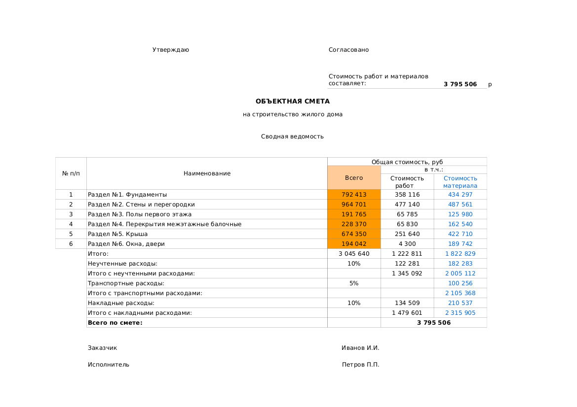 На данной странице, Вы можете ознакомится с образцом общестроительной сметы. Смета на строительство - важный элемент проектной документации, отражающий стоимость строительных работ по интересующему Вас проекту. В её состав входят позиции затрат, как на материалы, так и на выполняемые работы. На стоимость реализации дома может оказывать влияние регион, отдаленность от производителя стройматериалов, а так же сезонные погодные условия. Заказ сметы - разумное решение, позволяющее избежать непредвиденных затрат при строительстве.