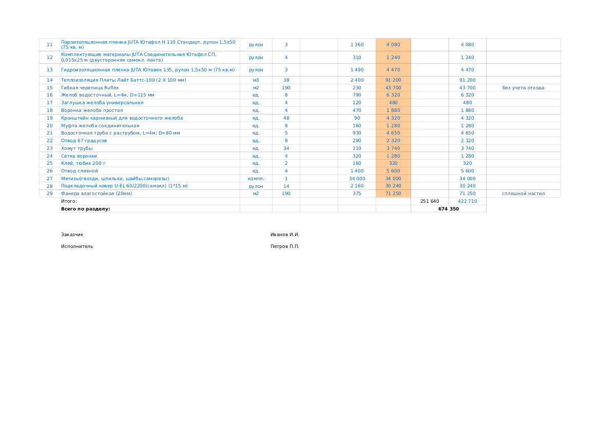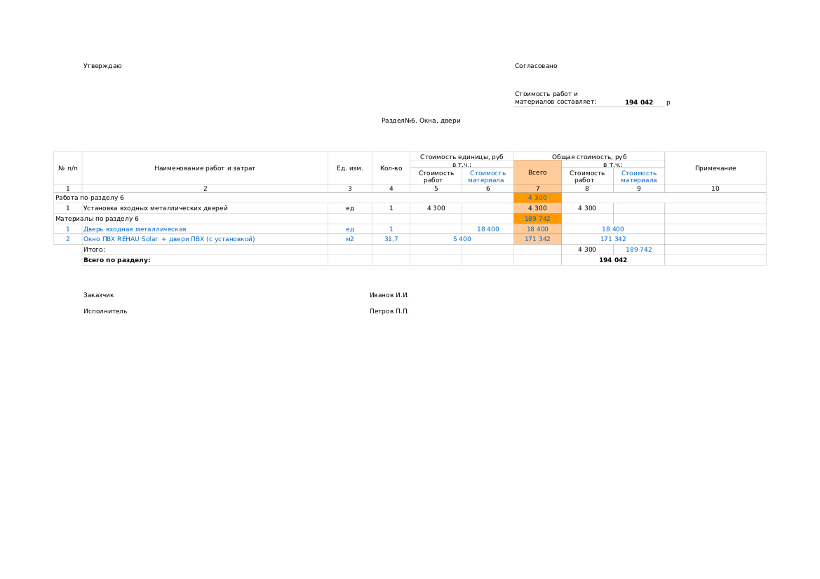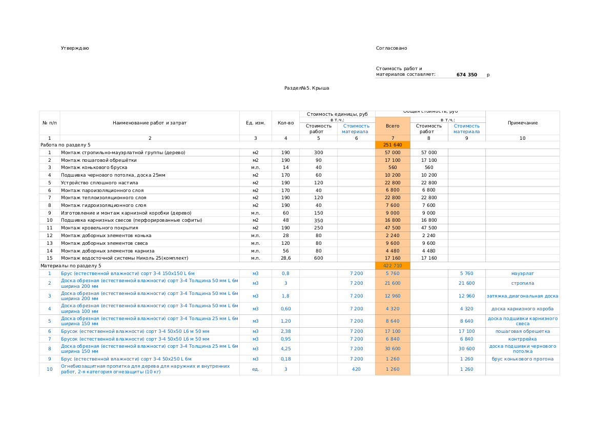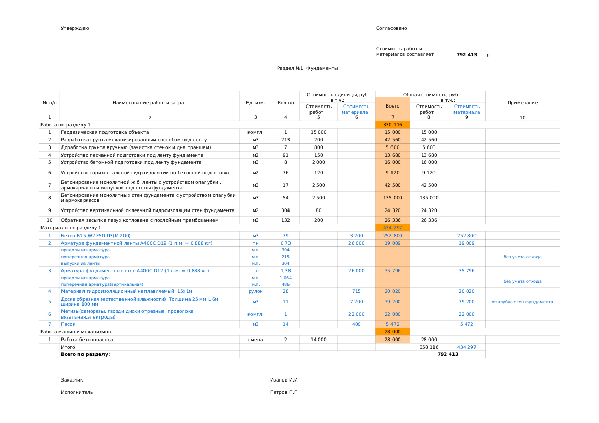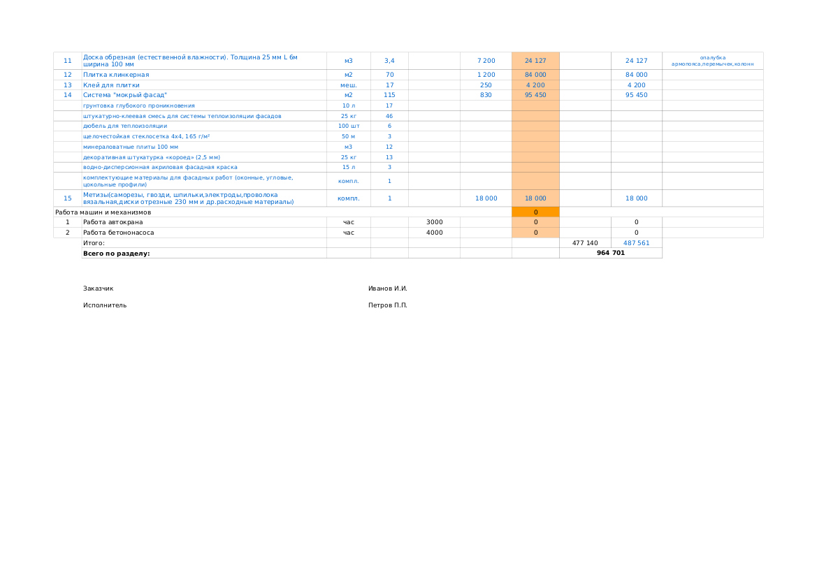 Смета на строительство